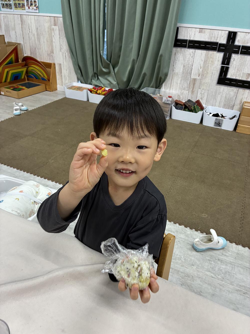 さつま芋おにぎりを作ろう! 2025/11/25 音のゆりかご保育園 LINEで送る Tweet 10月10日(金)にアイリス・リリー組の子どもたちが さつま芋をたくさん掘ってきてくれました。 そのさつま芋を使用して「さつま芋おにぎり」作りをした子どもたち。 丸や三角など自分流のおにぎりを上手に作っていましたよ。 掘ってきてくれたさつま芋は、甘くて美味しかったので、 普段はさつま芋が苦手な子も、もちろんさつま芋が大好きな子も、 みんなペロリと完食! 秋を感じられる食育活動になりました。 LINEで送る Tweet <前の記事 関連記事 2025/11/25 きれいにたべたよ! 2025/08/18 室内だけどアウトドア! 2025/08/18 色、いろいろ!