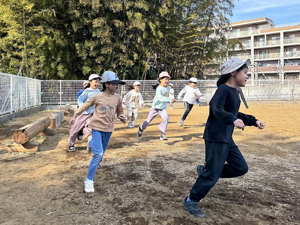 春の気配が近づくなか、マラソンを楽しむ子どもたち。